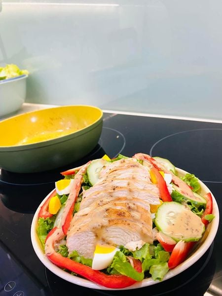 Salad ức gà sốt mè rang : là một món ăn healthy, rất dễ ăn giàu dinh dưỡng thêm mùi mè rang và no lâu với món rau củ